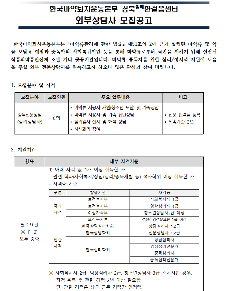 [모집] 경북함께한걸음센터 외부상담사 모집